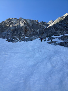 Petit tour en face Nord de l'Aiguille du Midi ce lundi pour se faire la caisse ! Jeff toujours en délicatesse avec son poignet est de la partie, et c'est pas parce qu'il fait beau qu'on va regarder le paysage.... pour ça y'a les terrasses des cafés de Cham...du coup ça part en courant, ça accélère au milieu et fini au sprint...